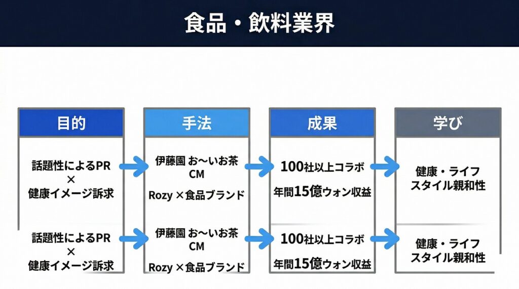 つまり、食品・飲料業界では「AIならではの表現力」と「話題性」を活かしたブランド認知拡大が有効だということ。
