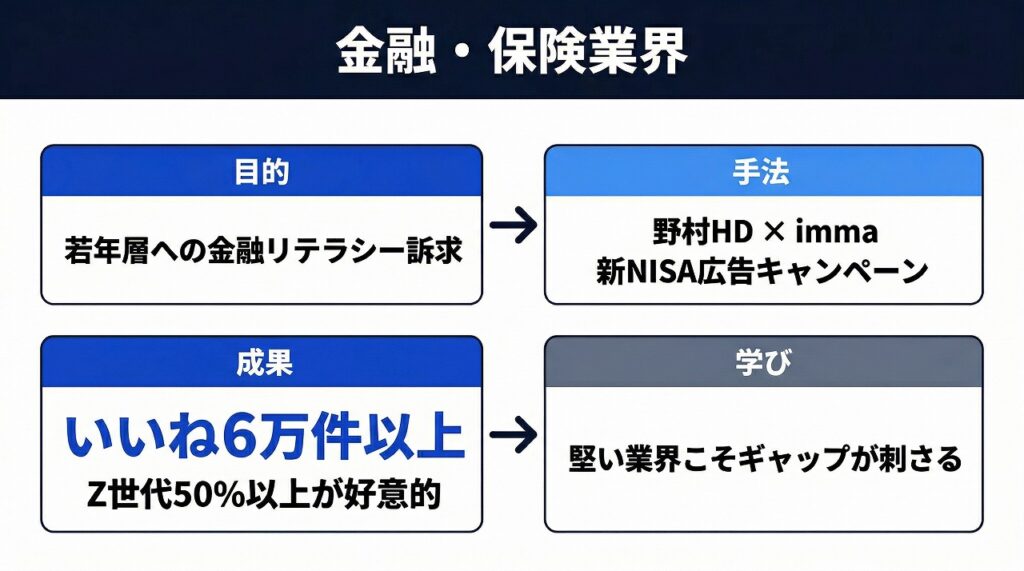 つまり、金融業界では「保守的なイメージの刷新」と「若年層へのアプローチ」にAIインフルエンサーが高い効果を発揮するということ。