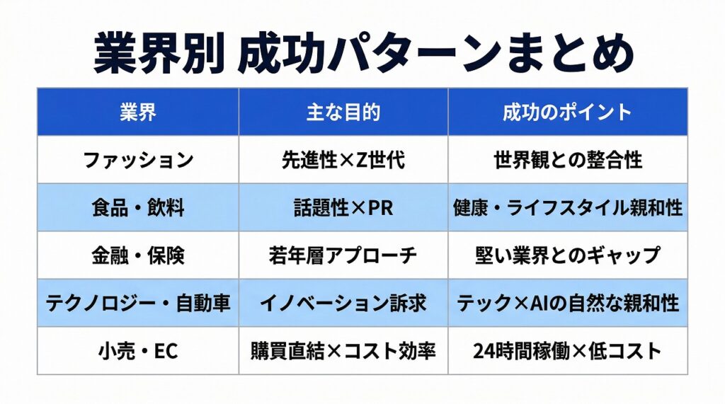 AIインフルエンサーの企業活用事例|業界別・目的別に学ぶ導入成功のコツ