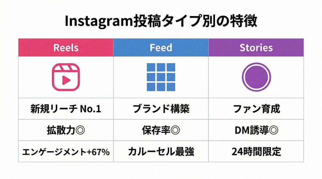 投稿タイプ別の効果──リール・フィード・ストーリーズの使い分け