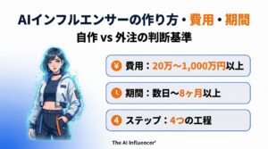 AIインフルエンサーの作り方・費用・期間について具体的に知りたい方は、こちらの記事で詳しく解説しています。