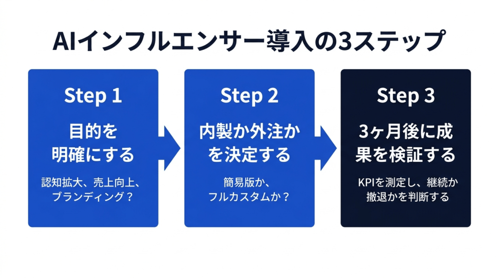 つまり、「目的の明確化→制作体制の判断→小規模検証」の3ステップを踏めば、メリットを最大化しながらリスクを最小化できるということ。