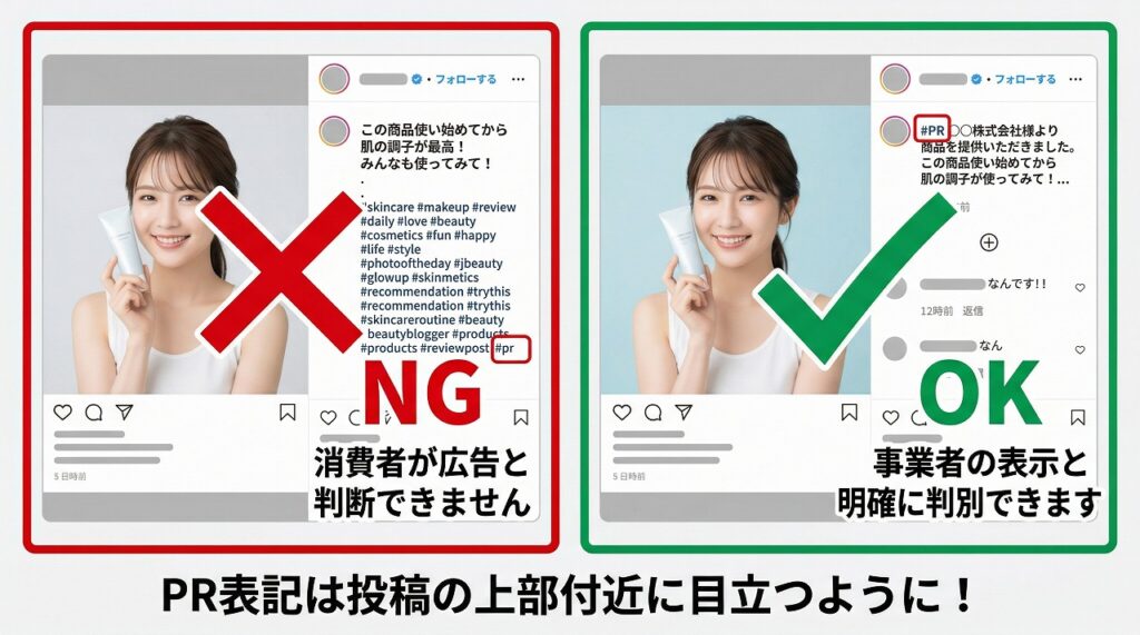 - 投稿の冒頭(キャプションの最初)に「#PR」を明記