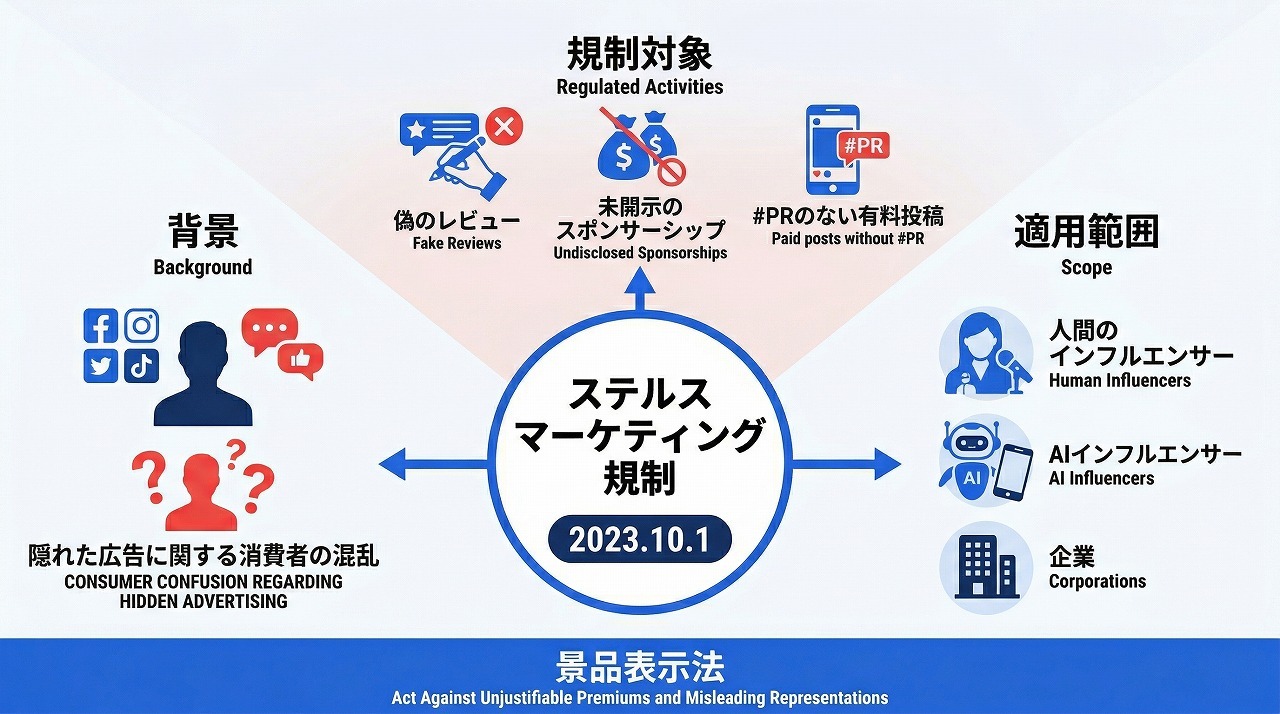 - 2023年10月施行の景品表示法「ステルスマーケティング規制」の内容と、AIインフルエンサーへの適用