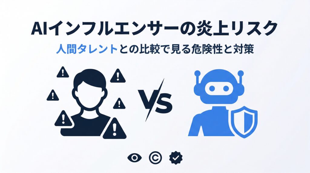 この記事でわかること AIインフルエンサー特有の炎上リスク(透明性不足、不気味の谷、著作権、品質問題など) 人間インフルエンサーとのリスク比較(スキャンダル、私生活トラブルなどとの違い) 炎上を防ぐための具体的な対策と透明性の重要性 「AIイン... -